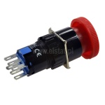 Przełącznik; przyciskowy; bezpieczeństwa; LAS1-AY-22TSR; ON-ON; odkręcany; grzybkowy; 2 tory; czerwony; bez podświetlenia; bistabilny; do lutowania; 5A; 250V AC; Onpow