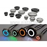Przycisk hermetyczny chwilowy z diodą. Mały skok klawisza. Przycisk o średnicy 19mm. Napięcie zasilania diody LED 230V. Przycisk wandaloodporny z krótkim skokiem i niską zabudową.